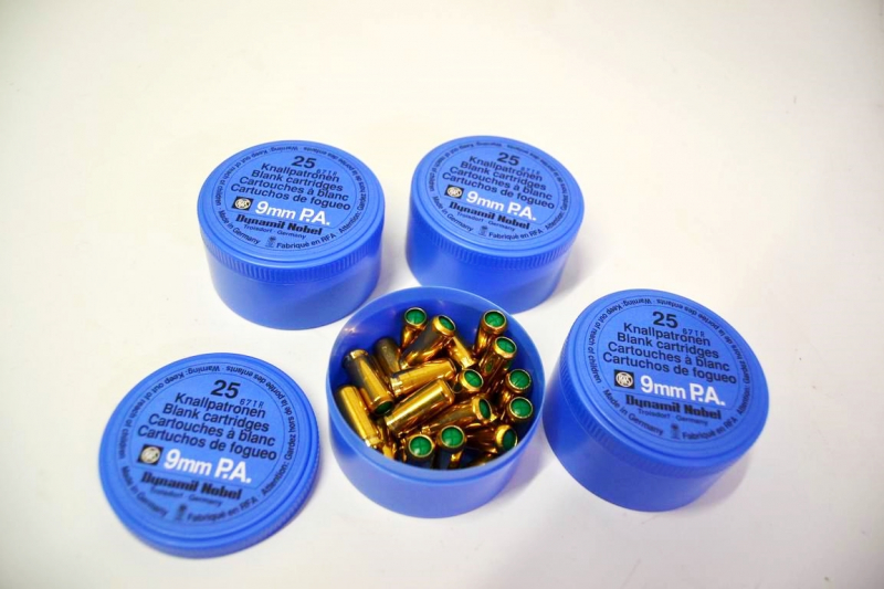 Sie bieten auf 4 Schachtel a 25 Schuß, 9 mm P.A. K Platzpatronen fabrikneu und natürlich unbenutzt.