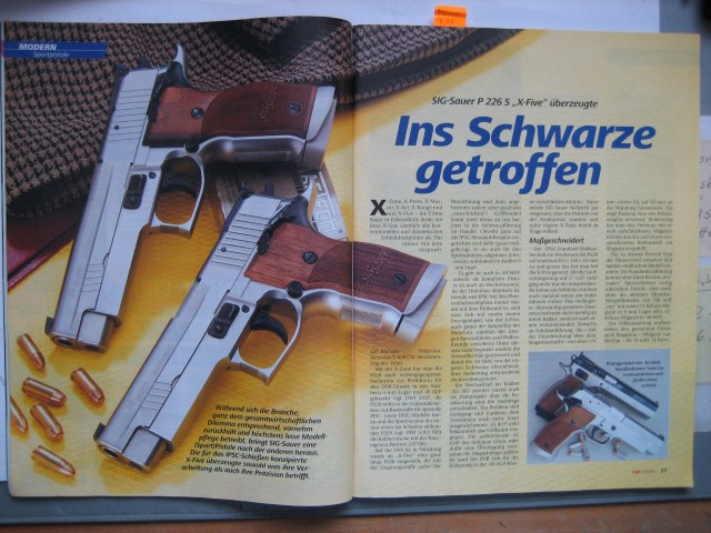 Für Sportschützen und Pistolenschützen +++ angeboten wird ein DWJ - Heft mit einem sehr interessanten Bericht für Pistolenschützen. -- ** SIG-Sauer P 226S " X-Fife ** ++ Die für das ISPC-Schießen konzipierte X-Five überzeugt sowohl was die Verarbeitung als auch die Präzision betrifft. Ein sehr interessanter Bericht (6 Seiten) mit Angaben zur Schußleistung der X-Five im Kaliber 9 mm Luger und .40 S&W +++ und es gibt noch weitere interessante Berichte - z.B. für Gewehr-Sammler / - schützen ** Mobiler Granatwerfer - Österreichisches Einheitsgewhr M 17/30 ** +++ Das Heft ist gebraucht, befindet sich aber in einem sehr guten Zustand. +++ Der Versand erfolgt als Großbrief mit DHL (unversichert) ; die Versandkosten gelten nur für Deutschland.+++ Bieter aus dem Ausland bitte Versandkosten vor Gebot erfragen. +++ Versandrabatt möglich, sehen Sie auch meine anderen Angebote. +++ Privatverkauf, daher keine Gewährleistung, Garantie oder Rücknahme. 12-2004 +++ Fragen bitte mailen.