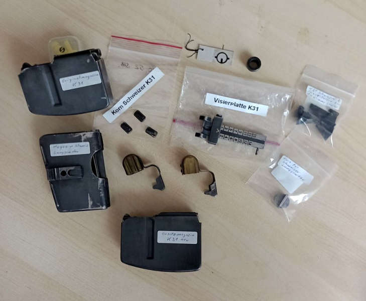 Sie bieten auf einen Konvolut von Teilen der Schweizer Gewehre K31 und K11. Siehe Bildbeschreibung . Schauen sie beim Händler auf dessen Preisliste . Viel Spaß beim mitbieten .