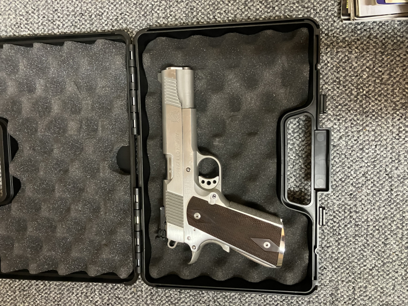 Verkaufe abgebildete Waffe Springfield Trophy Match im Kaliber .45 ACP. Ich habe mit der Waffe nur 2 Magazine verschossen, da ich die Funktion testen wollte. Sie schießt sehr gut und ohne Störungen. Die Waffe verfügt über ein Videcki Match Trigger. Eine verstellbare Visierung und ein verschiebbares Korn wurden in den Schlitten eingefräst.