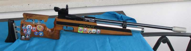 Anschütz 2002 Pressluft, rechts/links nutzbar, wird verkauft wie abgebildet, mit einem Red - Dot, heißt , zum zielen hat man einen roten oder auch grünen Punkt, mal ein Pressluftgewehr für zu Hause !