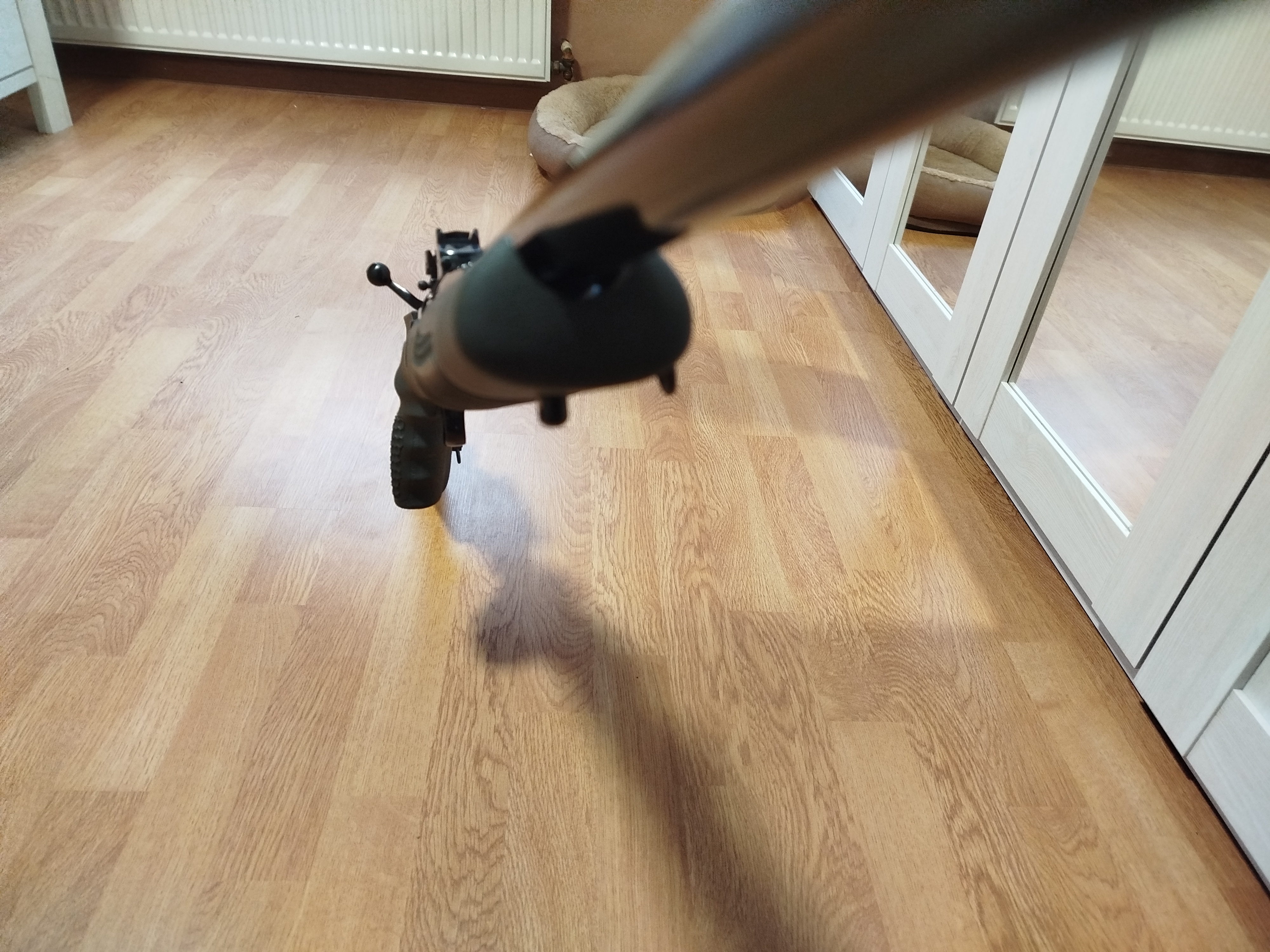 Sie stammt laut Büchsenmacher aus den 80er-Jahren und ist daher noch ein amerikanisches Qualitätsstück, nicht wie die Neuen, bei denen nichtmal die Verschlusswarzen sauber aufliegen. Das Magazin fasst drei Kugeln und kann durch Knopfdruck schnell entleer werden, ist aber nicht herausnehmbar.