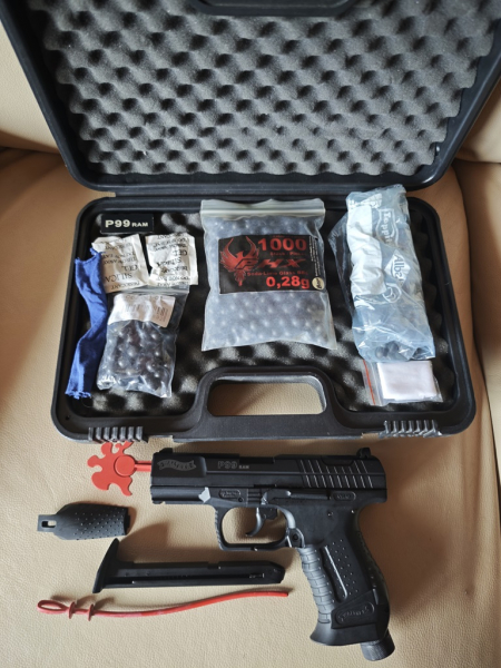 Biete hier eine Umarex P99 RAM aus Sammlung an. Sie wurde ein paar mal beschossen, lag aber sonstn ur in der Vitrine. Inklusive original Koffer, Gummigeschossen und Reinigungszubehör. Alles wie auf den Bildern zu sehen. Frei ab 18 Jahren.