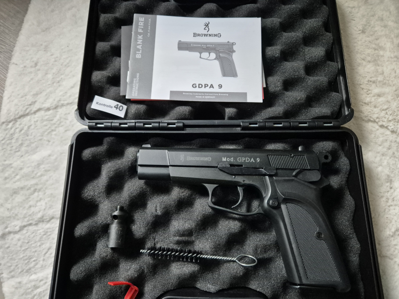 Ich verkaufe eine sehr schöne Browning GPDA 9mm. Die Waffe wurde nicht geschossen und lag in der Vitrine. Dazu gibt es den Originalkoffer, Abschussbecher, Bürste und die Beschreibung. Da es sich um einen Privatverkauf handelt, gebe ich keine Garantie oder Gewährleistung auf den Artikel.