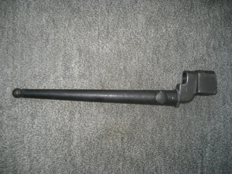 aus einer alten sammlung ein schönes britisches Bajonett, Spike No.4 MK II mit der dazugehörigen Scheide. Alles im super Zustand. Der Scheidenmund als Gussteil mit den entspr. Punzen und Broad Arrow. Scheide ohne Beulen und noch mit fast 99% Brünnierung. Bajonett noch mit über 80% Brünnierung, Beschriftung "No. 4 MK II", darunter die Ziff. "5". Drücker gängig. Die Scheiden sind heute schon teurer als das Bajonett selbst.