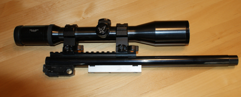 Der Lauf im Kaliber .357 Herrett hat ein M17 Mündungsgewinde und es ist eine Weaver-Schiene montiert.
