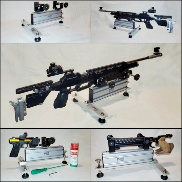 Einschieß-Vorrichtung, Einschießbock EVT-300-Pro wurde konstruiert, um Schussbilder und Munitions-Tests an Luftpistolen und Luftgewehren durchführen zu können.