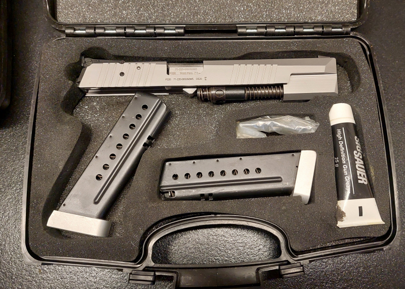 Lauflänge: 6" Schussleistung: weniger als 2000 Zubehör: 2 Magazine ( 9 Patronen ) im original Koffer, Universalschlüssel SIG SAUER zur Verstellung der Micrometervisierung.