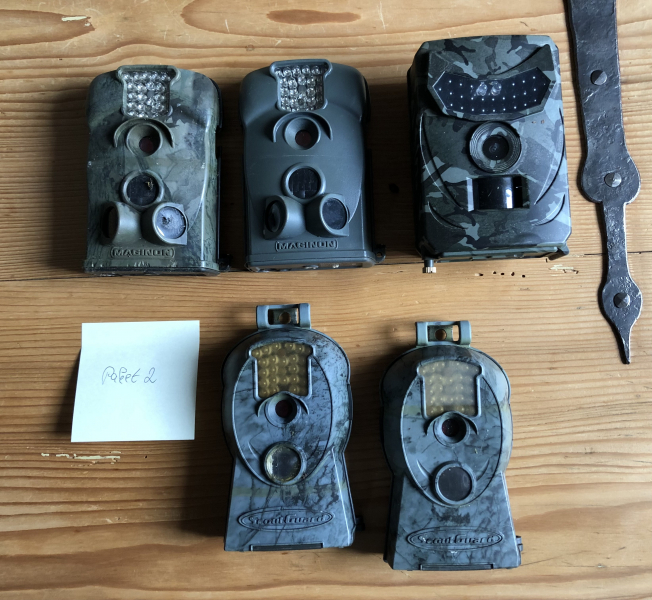 Ich biete hier 5 Wildkameras an, die nicht mehr funktionieren. Ich habe die Kameras als Attrappen verwendet.