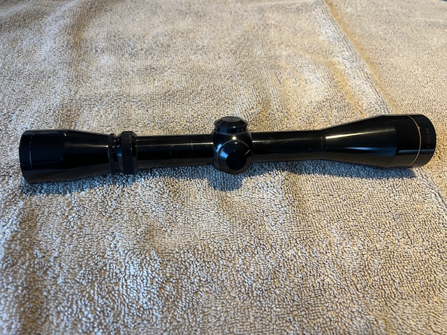 Älteres Leupold ZF VX-2c mit Absehen 1 in der 2. Bildebene ohne Leuchtpunkt abzugeben. Vergrößert 3-9 fach, Außendurchmesser vom Objetktiv beträgt ca. 46 mm, Mittelrohr ist 25,4 mm, leichte Montagespuren und Lackabschürfungen am Rand vom Okkular. Helle Stellen an Okkular- und Objetivkörper sind Lichtspiegelungen. Linsen sind klar.