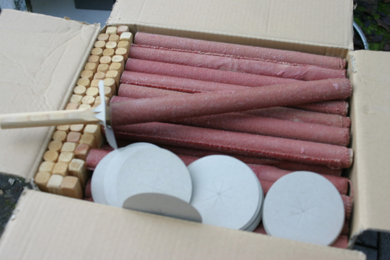 Aus grossem Nachlass-ca 50 stk.--bestehen aus Brennrolle ca 35 cm lang , Papphandschutz , Holzgriff - s Foto-- --fürs nächste Jägerfest--bei der Nutzung wird das Tragen von Lederhandschuhen empfohlen-- -