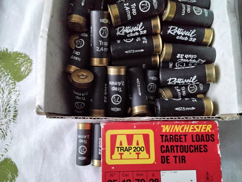 Zum Verkauf stehen 105 Stück Sportschrotpatronen 25 Stück Winchester Trap cal 17/70 28g 2,4mm.