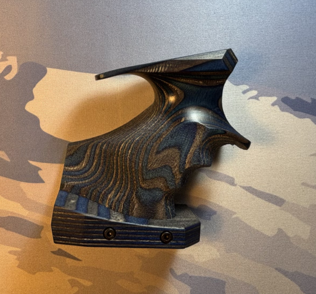 Der Griff ist neuwertig und wurde nur einmal testweise an der Pistole montiert. Montagematerial ist im Lieferumfang enthalten. Größe M. Er passt sowohl auf Walther LP400 / LP500 als auch auf Hammerli AP20 Pistolen.