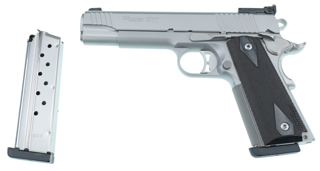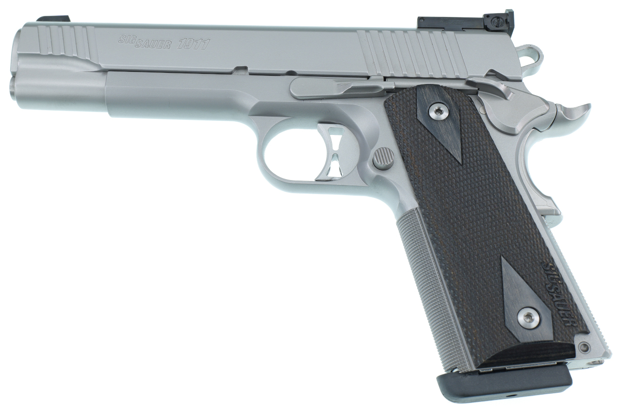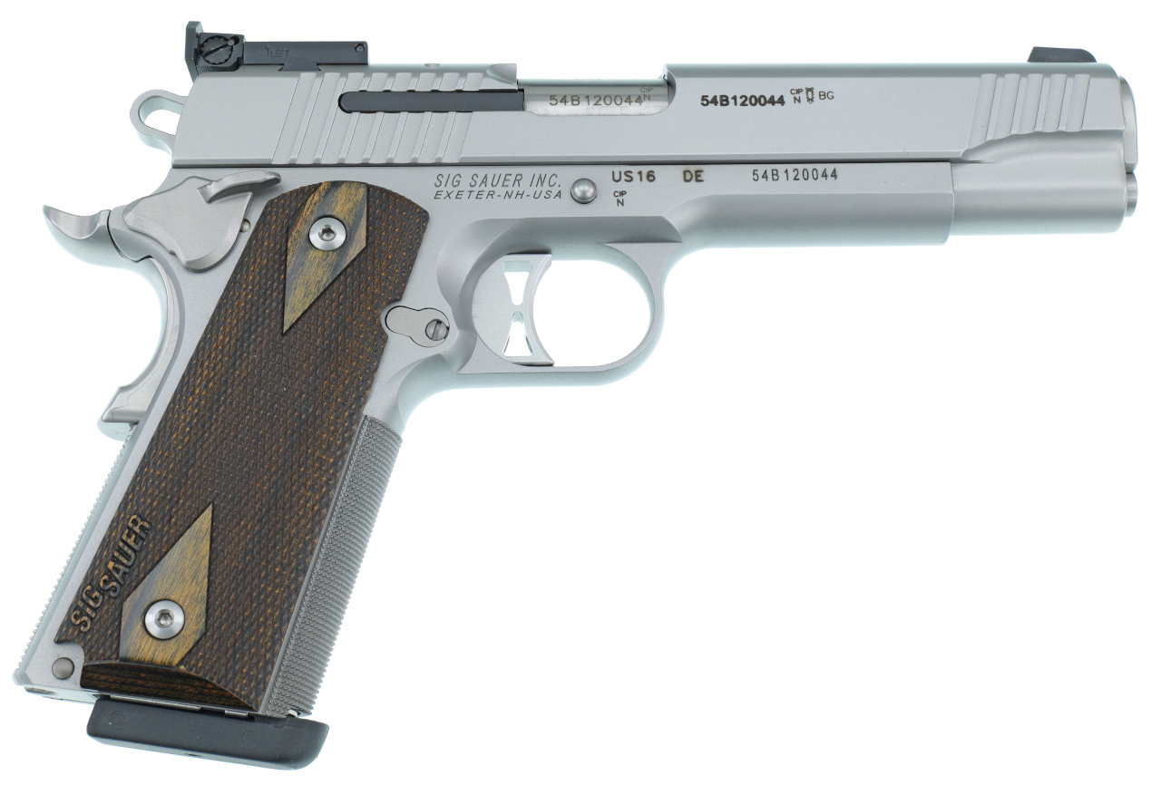 Selbstladepistole Sig Sauer 1911 Traditional Match Elite Stainless Kal. 9mm Para / Holzgrifschalen u. verst. Mikrovisier !!