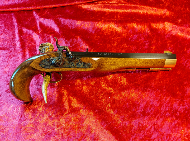 Ich biete eine ungeschossene Vorderlader Pistole -Kentucky- im Kal. 45 an. Sie hat meiner Meinung nach eine saubere Verarbeitung.