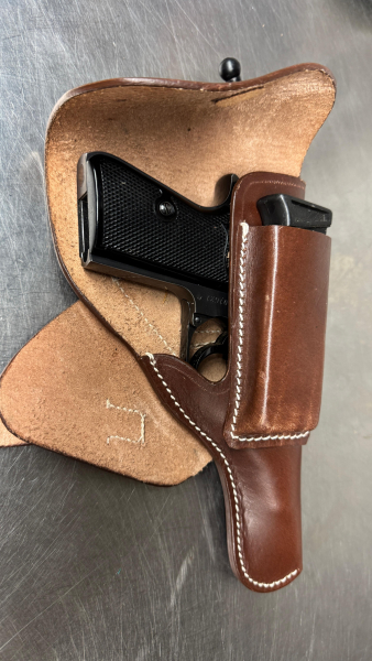 Cooler Gürtelholster für eine Walter PPK. Waffe dient nur zur Dekoration und ist natürlich nicht Bestandteil der Auktion.