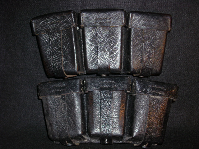 Zwei Patronentaschen für 98 k - 7,92 mm , Leder schwarz - nähte OK, eine Tasche innen gestempelt, aber unkennlich gemacht, guter Zustand