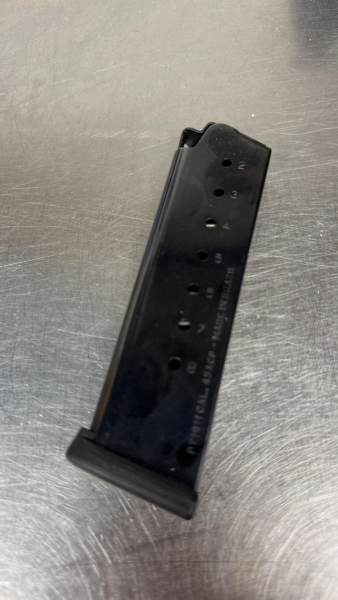 Verkauft wir ein Magazin für eine .45 ACP Pistole, gem. Aufdruck made in Brasil. Ich vermuite daher für eine Taurus 1911 Pistole.