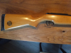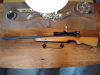 Ausserdem ist ein Okta 4x32 Zielfernrohr montiert, Befestigungsmöglichkeiten für eine offene Visierung ist vorhanden. Der Jubiläumsschaft weist nur leichte Gebrauchsspuren auf im gekennzeichneten Bereich ist ein Sprung der aber fest ist.