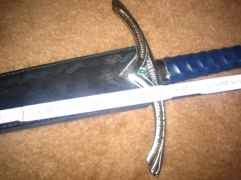 in der Vitrine gestanden. Gesamtlänge des Schwertes bezieht sich auf ca. 116cm, Klingenlänge 88cm. Scheide aus Leder ist mit dabei.
