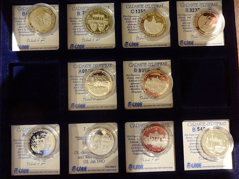 Limitierter Satz wie abgebildet. Insgesamt 10 Stück Echtsilber 999 Medaillen mit je 8,5 Gramm. Unberührt in Holzschatulle mit Zertifikat und Münzkapseln. Wertanlage bei dem stetig steigendem Silberpreis. Privatverkauf.
