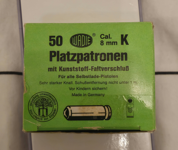 Mittlerweile begehrte Sammlermunition von Wadie in der Pappschachtel, in der Art nur noch Restbestände. Vollständig 50 Stk. Trocken gelagert. Munition ohne Mängel, allerdings weist der Karton leichte Gebrauchsspuren auf.