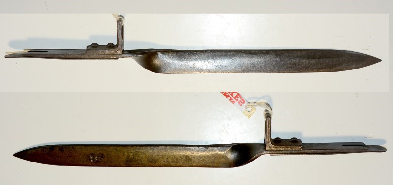 Seltenes österreichisches Notbajonett aus dem 1. Weltkrieg, verdrillte flache Klinge mit angenietetem Winkel mit Mündungsring, Blechfederverriegelung
