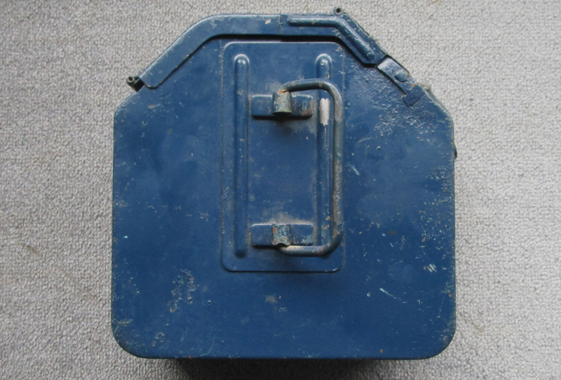 Biete hier diesen originalen Patronenkasten 36 für das MG34 oder 42 an, er wurde so in Fahrzeugen und Panzern eingesetzt, mit einem Fassungsvermögen von 150 gegurteten Patronen im Kaliber 8x57, mit Herstellerstempel der Firma HASAG Hugo Schneider AG in Leipzig aus dem Jahre 1939, mit WaA Abnahmestempel, wurde wohl nach dem Krieg schon einmal überlackiert, ansonsten guter gebrauchter Zustand, ohne Beschädigungen, Größe circa 20x20x8,5cm, Fragen hierzu gerne per email, allen Bietern viel Erfolg !