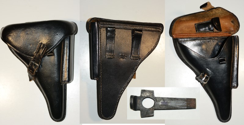 Koffertasche für Lugerpistole, sehr gut, ich nehme an, eine authentische Kopie aus den 1970er Jahren, in Art und Qualität völlig identisch dem Original, ungestempelt, in ihr befindet sich ein original Luger Schraubenzieher/Ladehilfe der finnischen Armee (SA - Suomen Army)