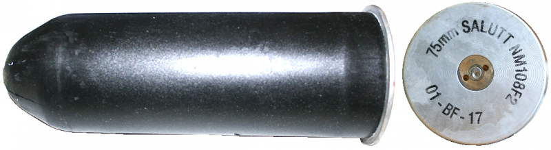 Sie bieten auf eine Salutpatronenhülse Kaliber 75 mm. Die Hülse besteht aus schwarzem Kunststoff mit Aluminiumboden. Die Patrone ist abgeschossen und frei von allen Gefahrenstoffen.Weiteres siehe Fotos, sie zeigen den Gegenstand dieser Auktion. Privatverkauf aus Sammlungsauflösung.