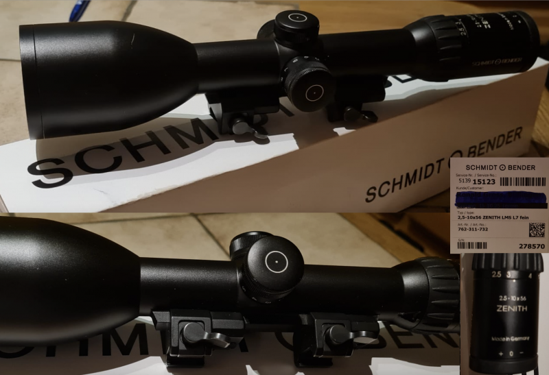 Biete an: ein kaum gebrauchtes Schmidt & Bender 2,5-10x56 Zenith LMS L7 fein mit Außenschiene und der dazugehörigen Montage für eine Picatinny Schiene. Zustand siehe Bild. Die 10-fache Vergrößerung ist für meine Bedürfnisse leider zu gering weshalb ich mir ein anderes Glas zugelegt habe. Gerne beantworte ich weitere Fragen oder sende auch weitere Bilder zu. Da dies eine Privatauktion gemäß EU Recht ist: keine Garantie, keine Gewährleistung oder Rücknahme. Fragen bitte VOR dem Bieten stellen! Versandkosten DHL trägt der Käufer, versichert bis 500 €uro, eine Transportversicherung bis 2.500 €uro kostet 6,99 € extra. Viel Spaß beim Bieten