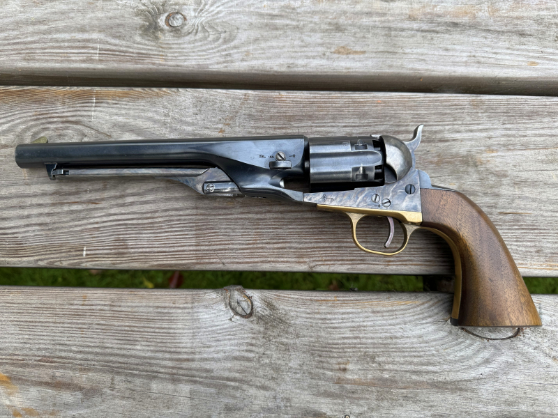 Angeboten wird ein Original Centaure Perkussionsrevolver im Kaliber .44 mit gefluteter Trommel. Diese Revolver wurden in Belgien nach Original Blaupausen der Fa. Colt aus bestem Werkzeugstahl hergestellt und sind damit den italienischen Repliken in Sachen Präzision und Haltbarkeit weit überlegen.