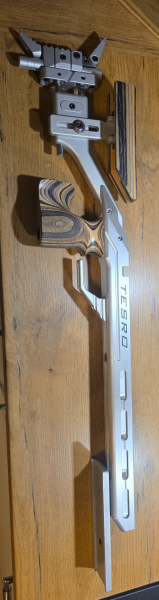 Aluschaft von Tesro inkl Auflage Keil aus Alu der in der Neigung links rechts verstellbar.