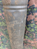 Auf dem vorliegenden Exemplar sind noch Teile der ursprünglichen Stempelung erkennbar, darunter Herstellerangaben und Los- bzw. Produktionsnummern. Der Zustand ist feld- bzw. lagerfundtypisch mit deutlichen Korrosionsspuren, jedoch ist die Form vollständig erhalten.