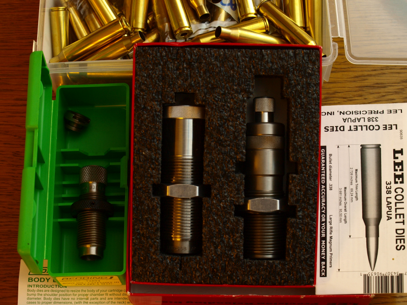Die massiven big-body Matrizen passen zB in eine RCBS-Rockchucker nach Abschrauben des Pressenkopf-Bushings. Die Kalibrierung des Hülsenhalses in der NS-Collet-Die wirkt sehr schonend auf das Hülsenmaterial und wird durch Graphitieren des Hülsenhals-Inneren deutlich erleichtert!