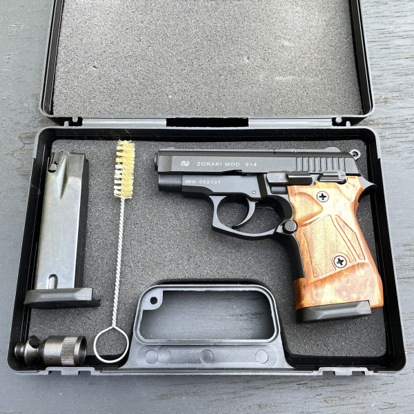 Verkauft wird eine im Bestzustand und ungetragene Pistole Zoraki - Modell 914 - 9 mm P.A.K. mit 2 Magazinen und Griffschalen in Holzoptik. Als Privatperson kann ich keine Garantie, Gewährleistung, Rücknahme anbieten !!! Der Verkauf erfolgt unter Ausschluss der Sachmängelhaftung. Käufer trägt das Risiko bei Versand der Ware. Ein Altersnachweis wird benötigt. Zahlung PayPal Freund/Familie oder Waren/Dienstleistungen mit 5 % Aufschlag, Überweisung. Bei Abholung Barzahlung, Sofortüberweisung.