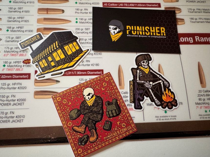 Zum Verkauf stehen tolle Sticker der Firma Punisher Tactical Equipment, einem renommierten Hersteller aus der Ukraine, bekannt für seine hochwertige taktische Ausrüstung und Accessoires. Diese Sticker sind neu und unbenutzt und eignen sich hervorragend für den Waffenschrank, Taktik-Equipment, Laptops, Taschen oder andere persönliche Gegenstände.