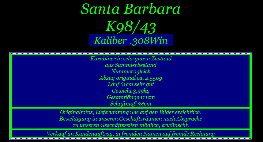 Artikel-ID: 20202477 ArtikelNr. des Verkäufers: 12431 Kategorie: Sammlerwaffen/-munition > Gewehre > 1900 - 1945