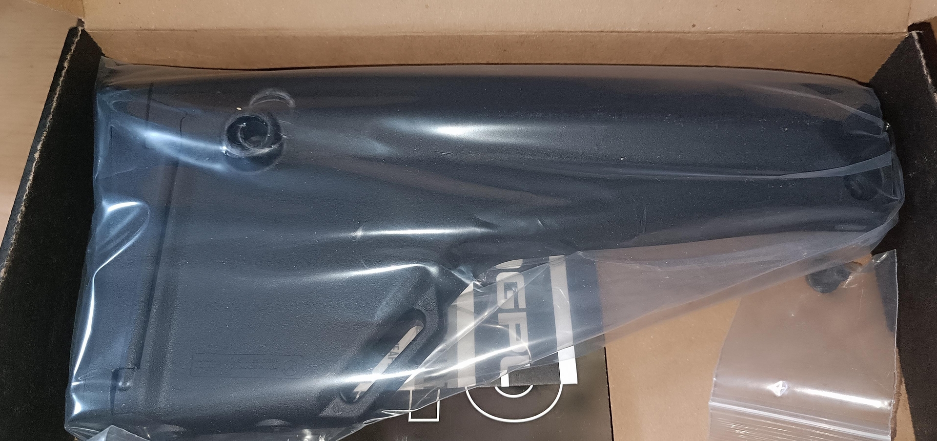 Designed as a basic upgrade, the stock features integral 1.25" sling loop, optional dual-side front and rear QD mounting points, replaceable anti-slip rubberized butt-pad, and internal storage compartment accessible through the rear storage door.