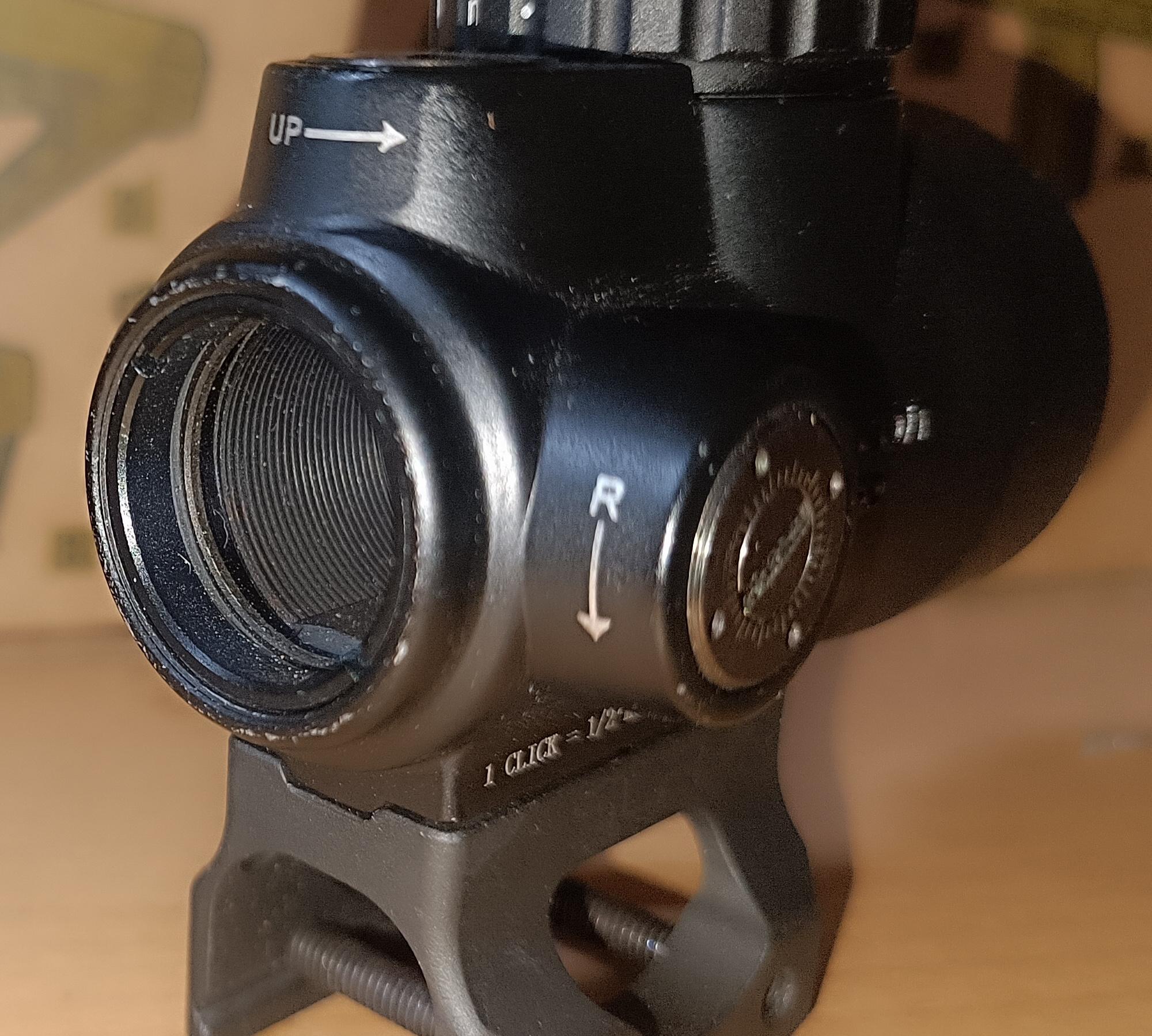 Solides Kollimatorvisier der aus Ganzmetall , das dem Kollimator eine hohe Haltbarkeit und Beständigkeit gegen äußere Einflüsse verleiht.