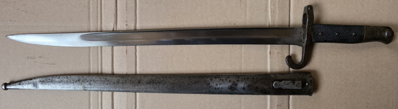 K.u.k. Säbelbajonett M 1873 für die K.u.k. Werndl Gewehre. Gefertigt bei OEWG (= Österreichische Waffenfabriks-Gesellschaft AG, von Werndl gegründet, heute Steyr-Daimler-Puch AG). K.u.K. Eigentumsstempel und Truppenstempel: II.L.8T.R.1552 vorhanden.