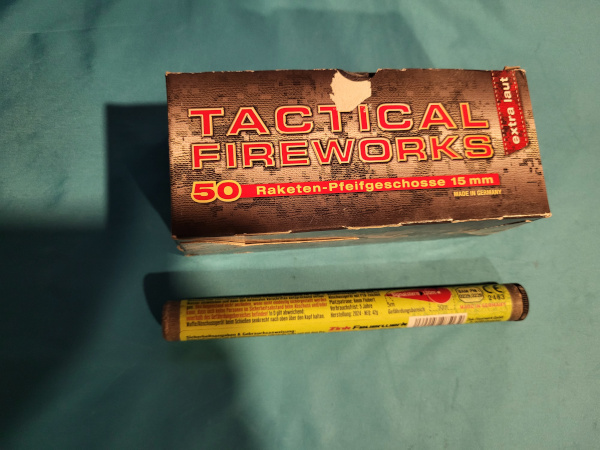Sie bieten auf ein Konvolut Feuerwerk ca 60 Teile, 50 Stück Raketenpfeifgeschoss und 10 Leuchtsterne
