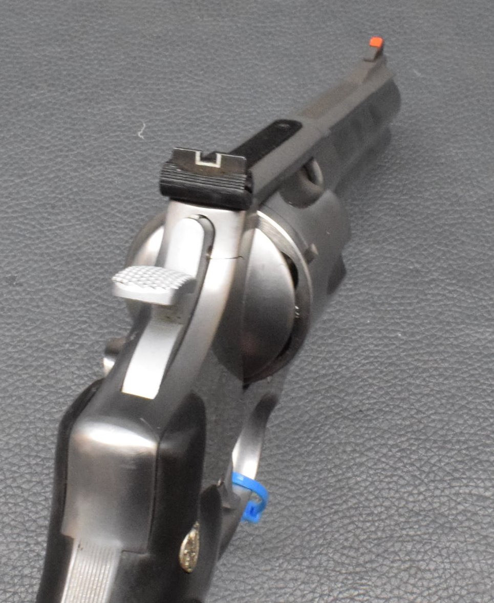 5" Lauf, verstellbare Micrometervisierung, Korn mit roter Einlage verstiftet, SA/DA Abzugssystem, N-Rahmen, 6-Schuss Trommel, sehr bequemer Gummigriff mit Fingerrillen.