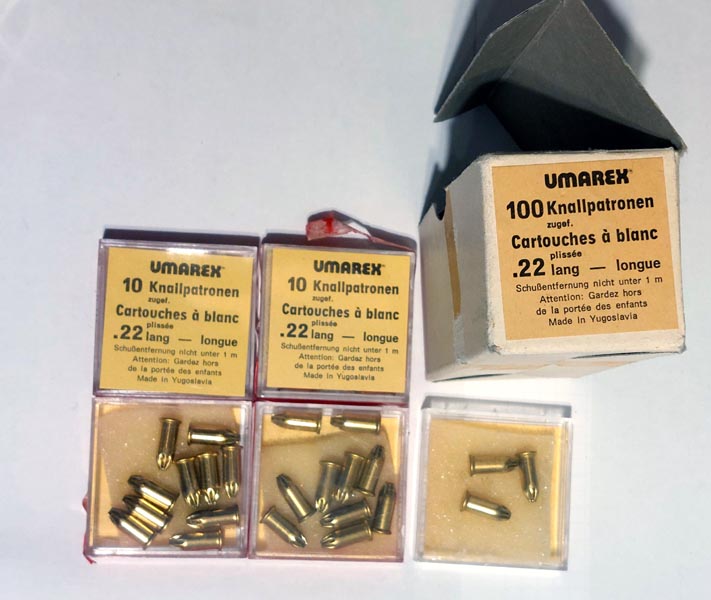 die 4 vollen Blister sind orig. verschlossen, das 5 Blister war mal offen. mit dabei der Karton für ehemals 10 x 10 Schuss also was ganz seltenes