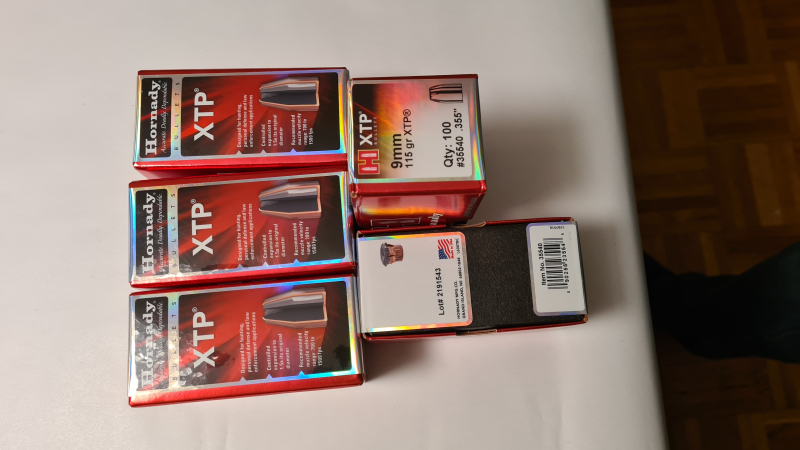 Ich verkaufe hier 5 Packungen à 100 Stück Hornady XTP Geschosse .355 9mm 115gr (#35540)