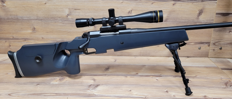 Mauser Lochschaft Holz, grau lackiert mit höhenverstellbarer Schaftbacke und UIT-Schiene