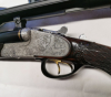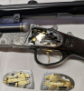 Hersteller: Krieghoff; Model Seitenschloss-Drilling Neptun Primus; Kaliber 7 x 57R; 16/70; hochwertiges Schaftholz; schottische Fischhaut; Seitenplatten sind komplett graviert. Zielfernrohr 8 x 56 Zeiss, Absehen 4 mit Schiene; gravierte Montageteile; 2. Zielfernrohr Zeiss Diavari 1,5 - 6 x 42, Absehen 4, gravierte Montageteile; vergoldete Abzüge und vergoldete Schlossteile (siehe Bild), welche ohne Werkzeug ausgebaut werden können; kleiner Einstecklauf (Krieghoff)Kaliber .22 Magnum im Hinterschaft; großer Einstecklauf (Krieghoff), von vorne verstellbar (vvv); Kaliber .22 Hornet im rechten Schrotlauf; Riemenbügel; Munitionspackungen für jedes Kaliber sind dabei und werden bei Bedarf separat geschickt, zusätzliche Kosten für den Käufer. Separate Kugelspannung; Schaftlänge ca. 35 cm; Verschluss dicht; Goldbänder an der Laufwurzel; Makeloser Gesamtzustand, kaum Gebrauchsspuren vorhanden. Schaut euch die Bilder an. Sollten weitere Bilder gewünscht werden, bitte genau mitteilen welche. Vorort kann der Drilling besichtigt werden, was wir gerne machen. Unsere Meinung: TOP Waffe, TOP Zustand; TOP Ausstattung.