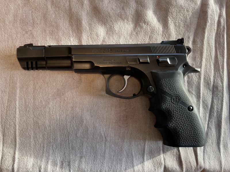 Ich biete an im Auftrag eine Sportpistole CZ 75 Sport im Kal. 9mm Para. Die Waffe ist nummerngleich direkt vom Hersteller, wie sie seinerzeit über Frankonia vertrieben wurde (s. Bildmaterial), keine zusammengebastelte Version. Kommt aus erster Hand, ist sehr gut gepflegt. Mit dabei sind zwei Magazine. Sie verfügt über einen Trigger-Stopp und einen überarbeiteten DA/SA Abzug. Im DA Modus läuft der Abzug weich und ohne Kratzen, im SA Modus steht er trocken und bricht klar und kommt einem SAO sehr nah. Wenngleich von dieser Variante kaum noch gesprochen wird und sie kaum noch angeboten wird, handelt es sich um ein echtes Sportgerät, das Vorgängermodell der aktuell sehr beliebten CZ 75 Sport 2. Diese Waffe habe ich vor langer Zeit (gute 12 Jahre her, seitdem im Tresor eingelagert) einige Male selbst geschossen. Die Präzision war/ist super. Im Einsatz war sie tatsächlich eher selten. Der Erstbesitzer hatte andere Schwerpunkte. In einer anderen Auktion biete ich aus dem gleichen Nachlass auch ein kurzes 9mm System für die CZ. Verkauf erfolgt nur an Erwerbsberechtigte (z.B. WBK grün mit Voreintrag oder Handelslizenz). Der Verkauf erfolgt von privat, ohne Gewährleistung, Garantie, Umtauschrecht oder Ähnliches. Nachverhandlungen sind ausgeschlossen. Abholung vor Ort ist nach Vereinbarung möglich. Der Versand erfolgt nach Überprüfung der Unterlagen durch die Behörde. Kein Export ins Ausland!