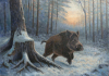 Originalgemälde (Unikat) "KEILER IM WINTERWALD" des Pfälzer Tier-und Jagdmalers Thomas Bold. Ölfarben auf Leinwand (auf Keilrahmen), Größe 50x70cm, signiert Th.Bold.