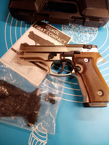 Extra dicke Holzgriffschalen, original schwarze Kunststoff Griffschalen und passende Schrauben.